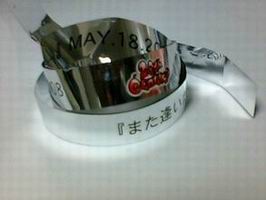 トニコンオーラスに森田さん&准くんが来ていたのねぇ。 良かった良かった♪ そうそう、ワタクシがGETしてきた銀テープ。 トニコンは、こんなとこまで凝ってるのねぇ・・・っと 関心していたのだけれど、文字入りはフォーラムだけだったのですね。 ちなみに 17日は 2008.5.17 INOHARA 32th HAPPY BIRTHDAY 18日は 『また逢いたいね…』MAY.18.2008 日によって文字まで変えるなんて・・・!にくい演出ですねぇ。 そして良き想ひ出になりました(*・∀・*) |